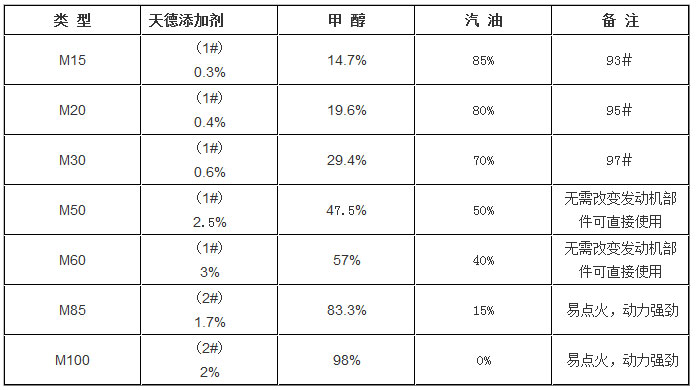 1、調(diào)配所用的甲醇必須嚴格控制含水量,純度在99.5%以上,天然氣制甲醇優(yōu)先選擇,煤質(zhì)甲醇亦可;汽油以國標90#、93#汽油為準?! ?、添加劑與甲醇混合后的變性甲醇,必須均勻透徹,且清凈分散后方可加入到汽油中。